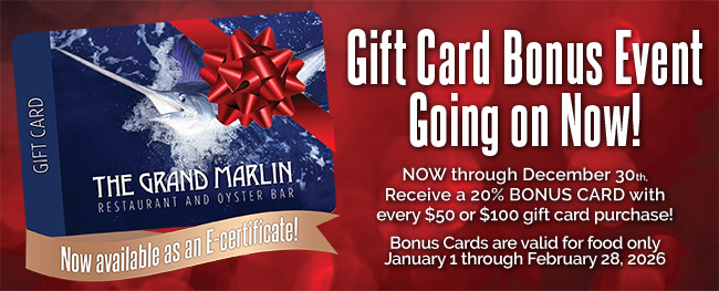 The Grand Marlin has been serving Panama City's best selection of fresh seafood since opening its doors in the fall of 2016. Offering a tranquil, relaxed atmosphere, The Grand Marlin’s delectable, daily menu specials from the kitchen of award-winning Chef Gregg McCarthy quickly established itself as a Panama City Beach mainstay. Chef Gregg's concept remains simple – to focus on fresh, quality seafood and highlight it with local ingredients. And the concept is working.